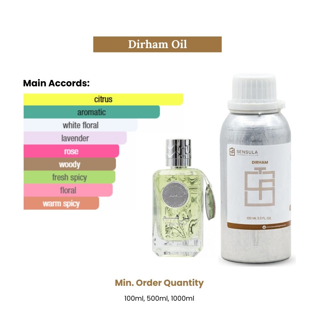 Dirham fragrance oil, classic middle eastern aroma for home diffusers and perfume oils.