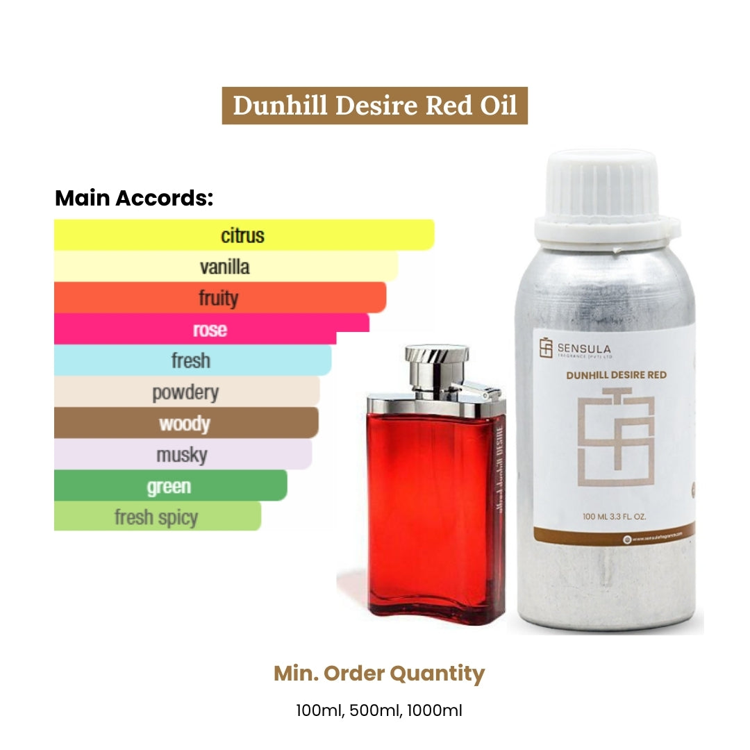 Dunhill desire red fragrance oil, vibrant scent suitable for diffusers and perfumery projects.